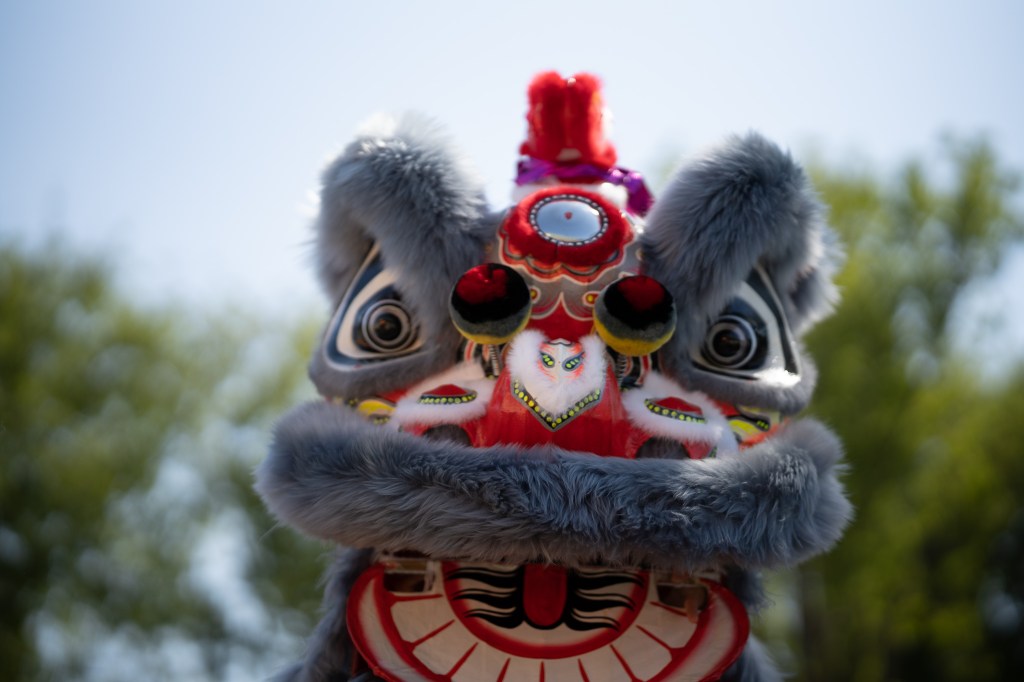 Day 2: Lion Dance Club performing on stage and peeking up into camera frame.