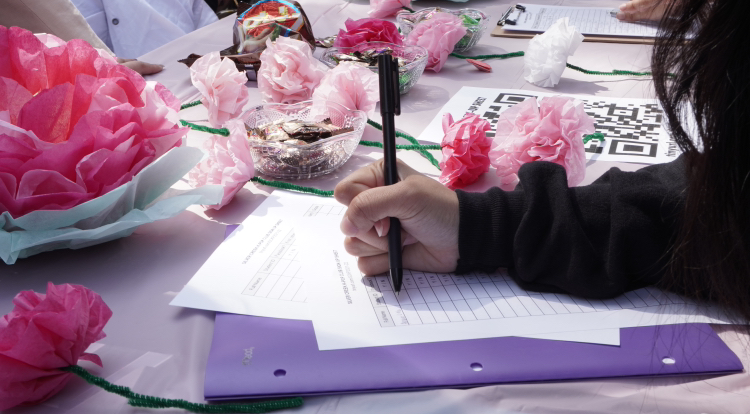 Day 3: Sylvia and Colin holding up their SCKP Club signs to recruit members to sign up.
