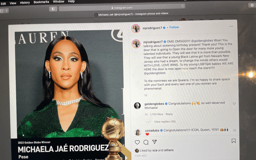SAN JOSE, CALIF. – On Jan. 9, 2022, Michaela Jae Rodriguez, known as MJ Rodriguez, made history at the Golden Globes by being the first transgender woman to win “Best Preformance by an Actress in a Television Series.”