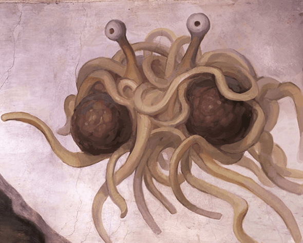 Pastafarians also have religious holidays, paraphrased from the article: Pastafarians hold Fridays as their holy day. They exclaim at the end of their prayers: “R’amen” (a parody of amen as a commemoration to their noodly god). They celebrate “Pastover” which requires eating lots of Pasta. They also celebrate “Ramendan” where they fast from normal food and eat only Ramen noodles.