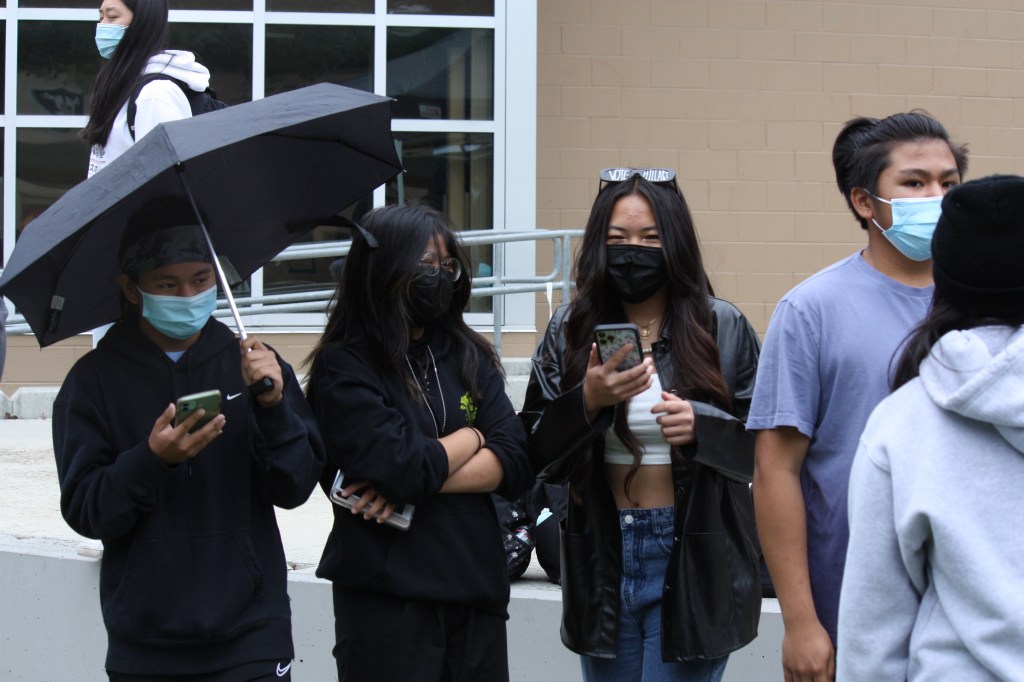 Students standing by ready to watch the activities