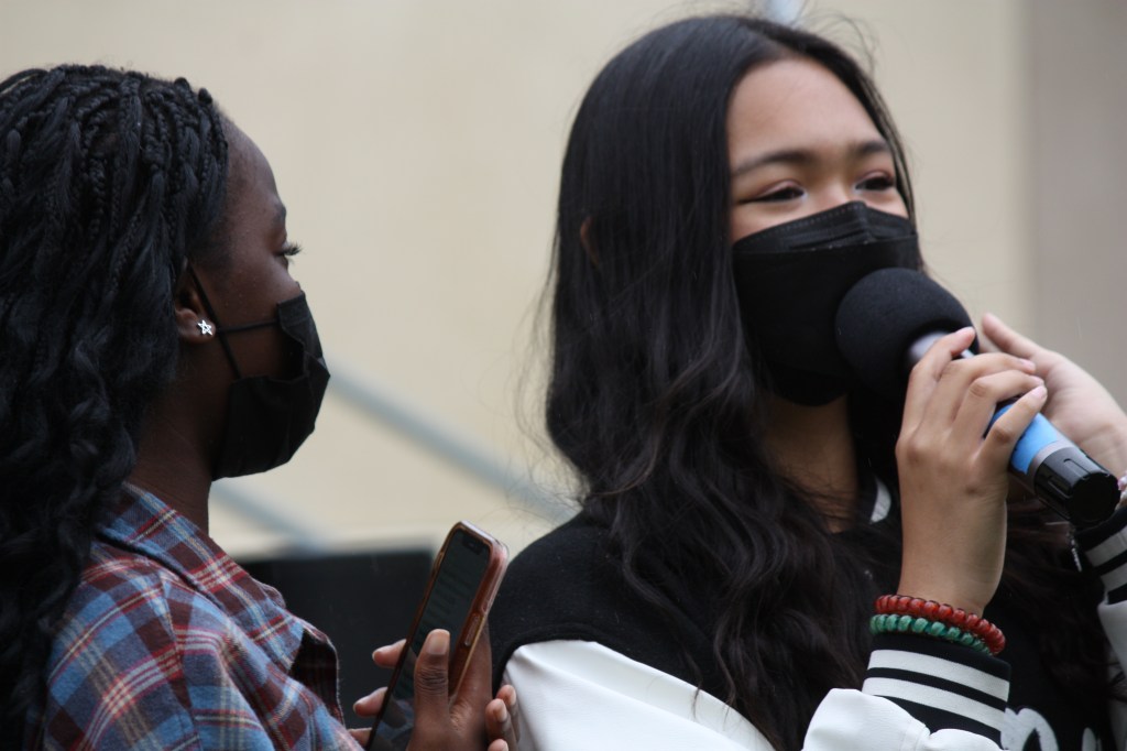 Angela-Kate San Juan giving her speech re-running for 2025 Class President.