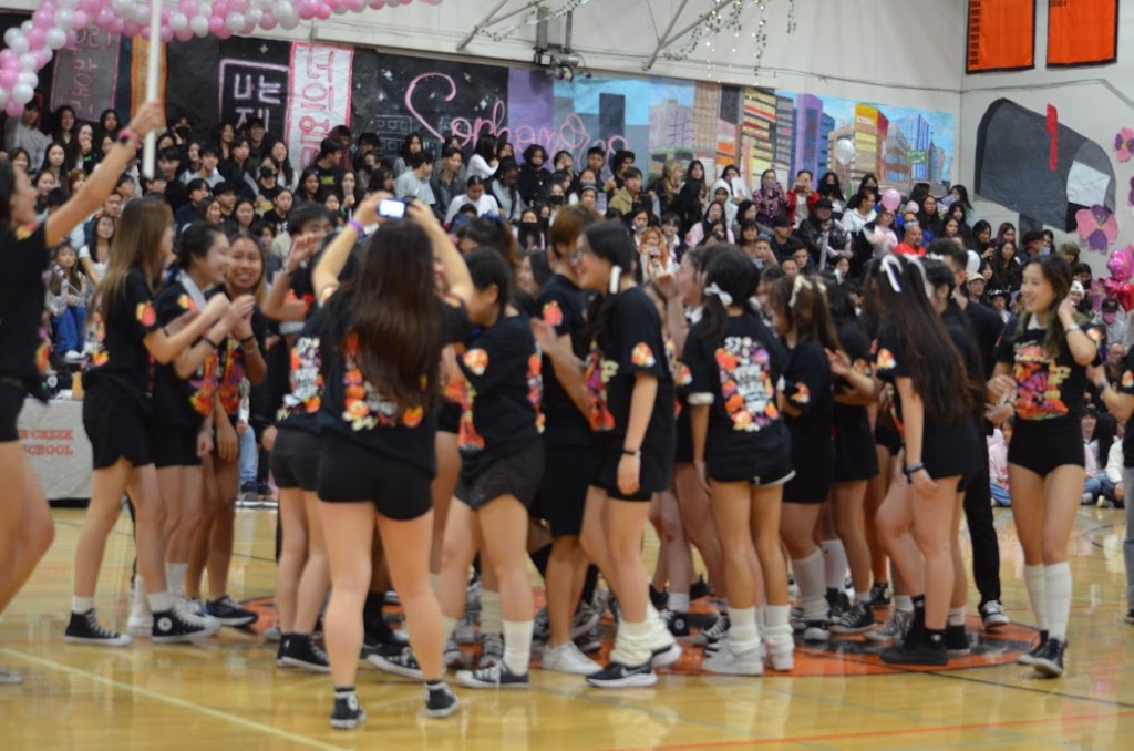 Then it was back to the classes! Next was the Sophomores with Seoul! Overall I thought the Sophomore’s performance was very cute. True to the theme they created a storyline that followed a typical K-drama, however, they had very American names. Similarly to the Freshmen, their boards were out of sync for both sides. They had very good dances, with the light one being particularly stunning visually. They also had the cutest props out of all of the classes