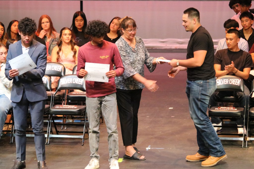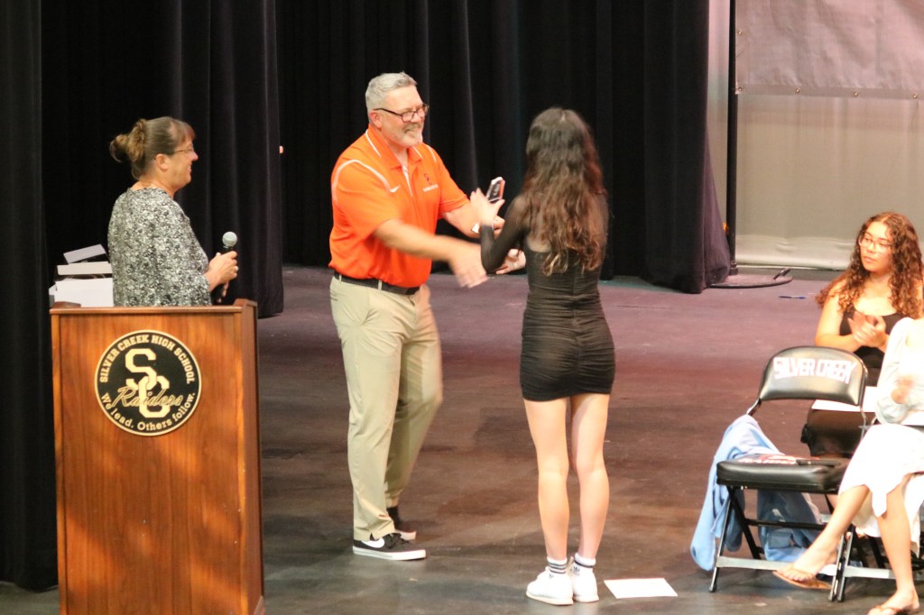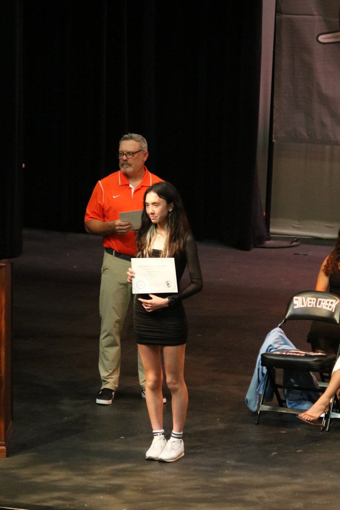 On Wednesday Evening, family and friends gathered to celebrate the achievements of Silver Creek High School athletes. The ceremony was conducted by the Boys and Girls Athletic Directors, Mr. Eric Luescher and Mrs. Trish Sunseri.
