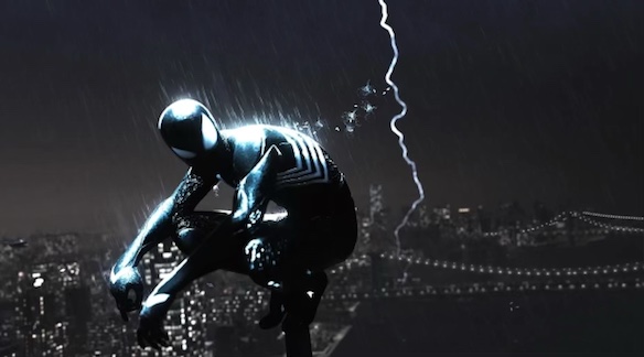 Photo of Spiderman in the symbiote suit on top of a building