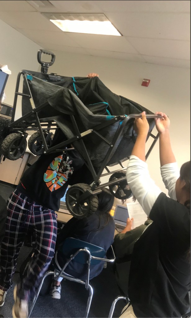 The CR leadership commission pulling the carts out of Mrs. Brooks’s room. Photo Credits: Priya Ramamurthy