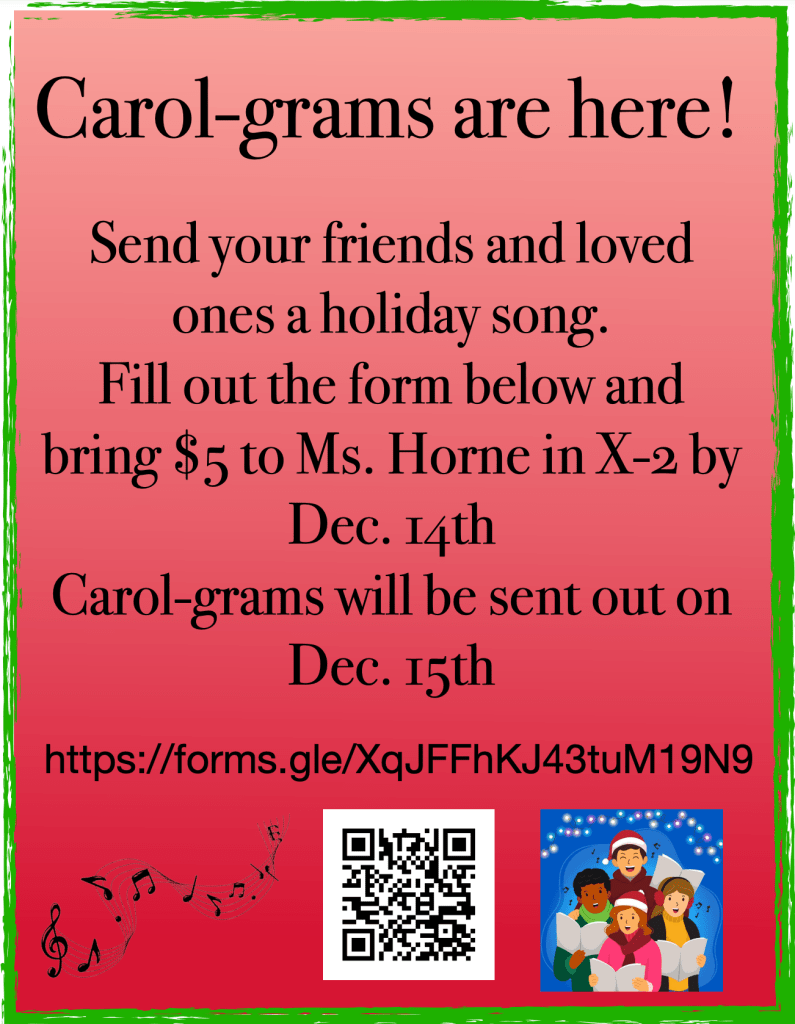 Tagged as: $5, carol-gram, carol-grams, carols, december 15th, Entertainment, friends, gift, high school, holiday, holiday song, loved ones, Ms. Horne, Music, school news, SCHS, senior, Silver Creek, silver creek high school, singing, songs, X-2