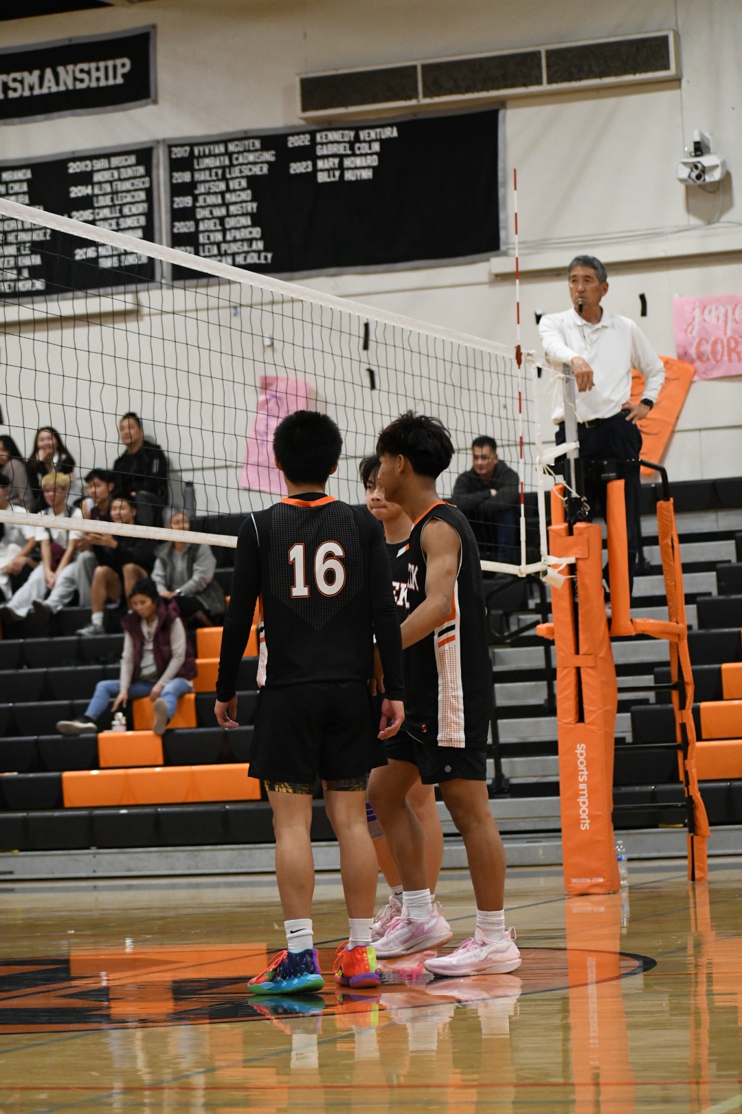 For scoring points, Keith Bacatat and Derek Nguyen, the outside hitters, hit the ball really hard and tried to get past Del Mar’s defense. Jason Too and Ethan, the middle blockers, were also super important because they blocked shots and helped score points, too. We also had our two freshmen, Anderson Ho and Booden Miller as our oppo. Miller did a great job on spiking that ball where it was needed. As Ho he was on bench due to academic probation but he will be playing in the game against EVH.