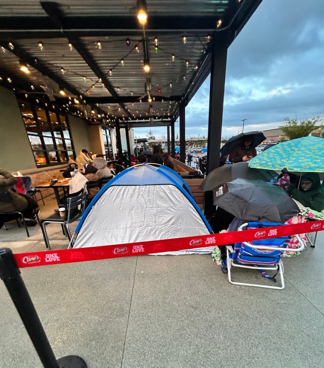 Opening on April 1, people camped outside the night before to be among the first 500 to receive a gift card and a complimentary Raising Cane’s hat.